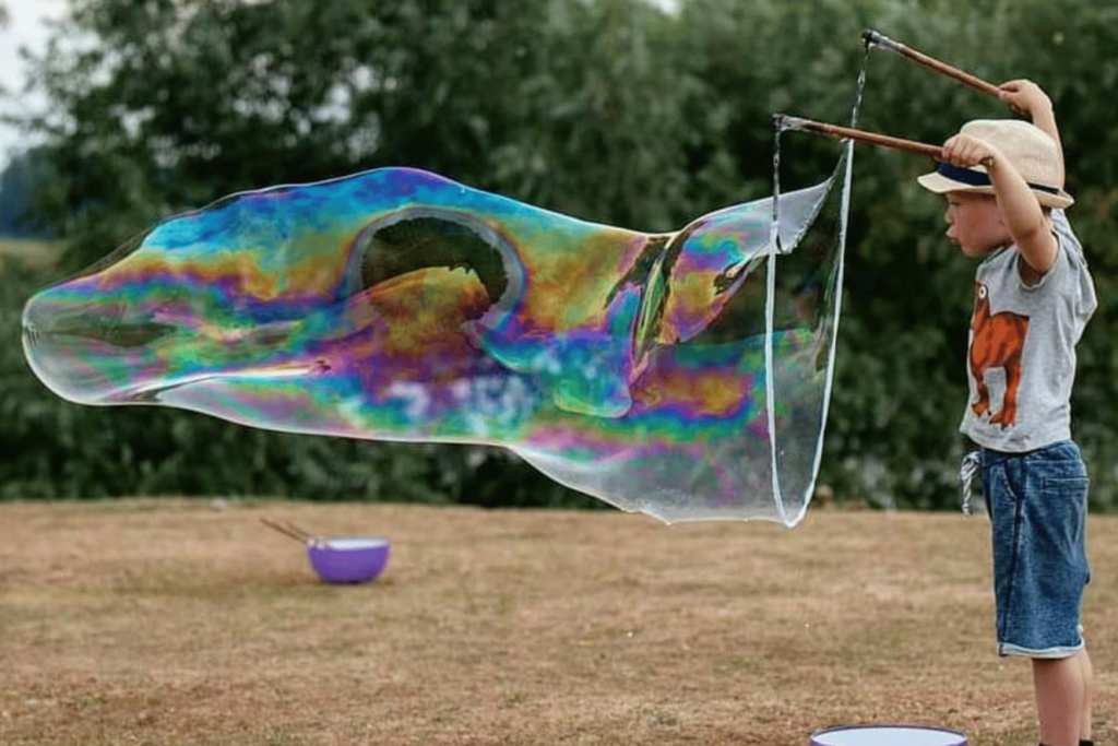 • Reuze zeepbellen is ideaal als creatieve workshop