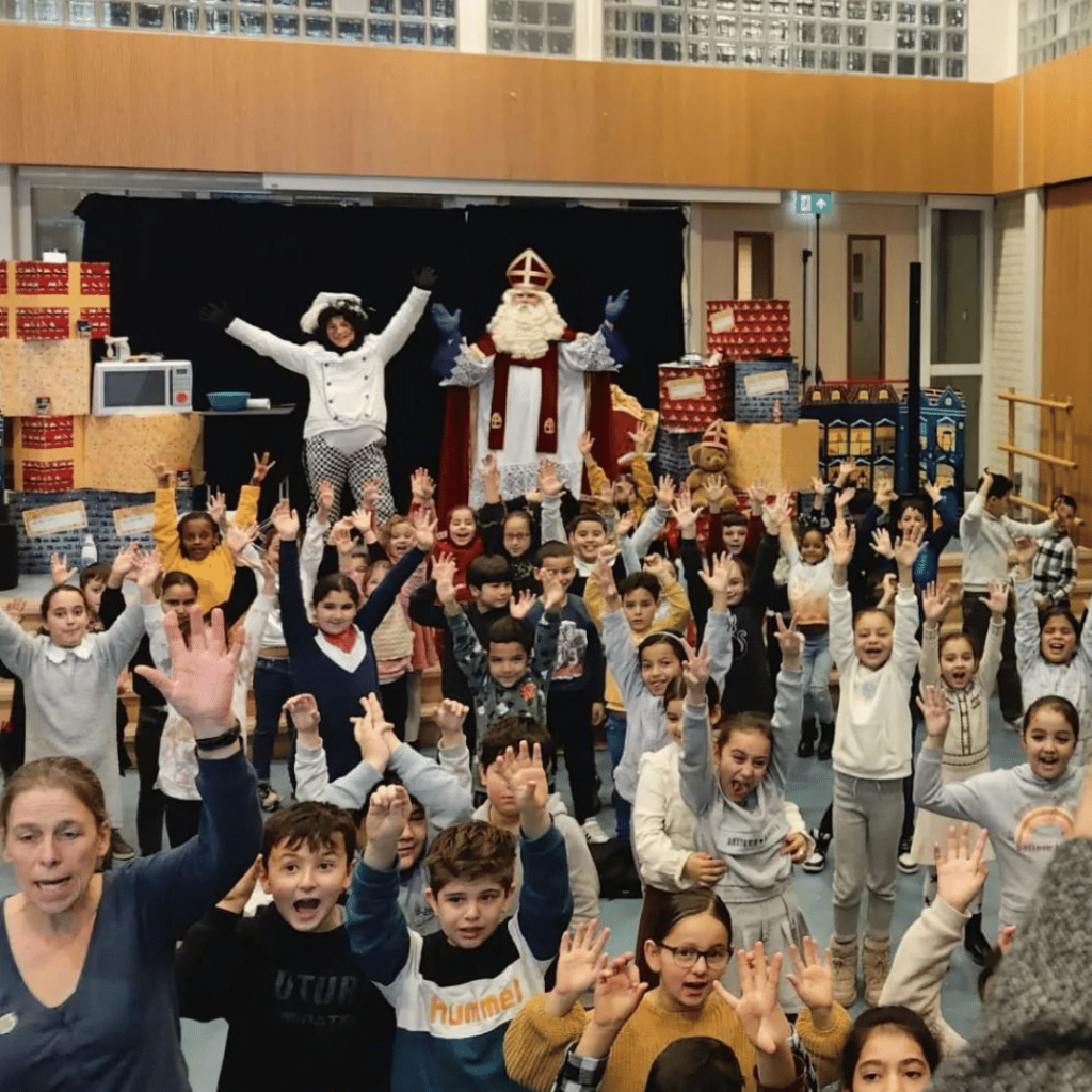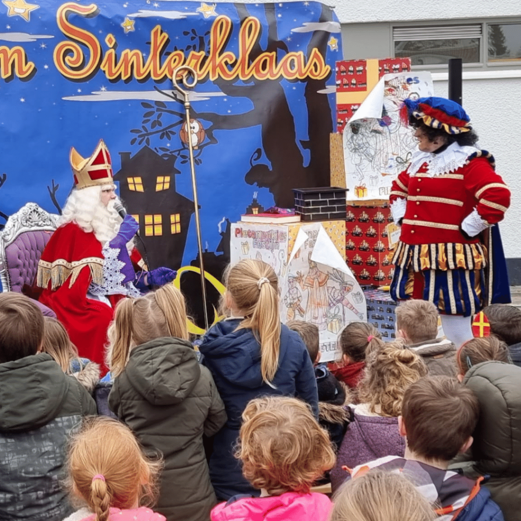 Sinterklaas komt met zijn mooiste Pieten bij jouw op school. In de aula kunnen alle kinderen genieten van een feestelijk onthaal of een leuk toneelstuk. Vervolgens gaan Sint en Piet uitgebreid op klassenbezoek bij de onder- en middenbouw. Een bliksembezoek aan de bovenbouw om de mooiste surprises te bekijken vindt Sinterklaas ook erg leuk. Er zijn genoeg mogelijkheden om het sinterklaasfeest op uw school te vieren. Wij denken graag met u mee en onze professionele en pedagogische acteurs spelen naar wens in op uw verhaallijn.